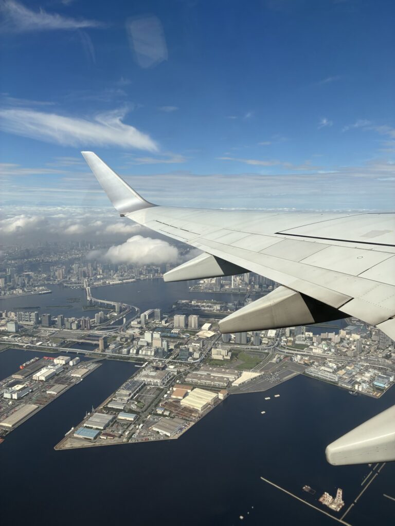 機内にて ちょっとお茶しましょ X Facebook はてブ LINE コピー 2025.10.05 前の飛行機が鳥と衝突したことで出発が大幅に遅れたが無事に離陸 機内サービスを楽しむ せっかくのコーヒーだけど飛行機時間が短いのであまりのんびり味わえない この音 機内の独特の雰囲気が良い まもなく着陸予定 青森は小雨、気温は20度