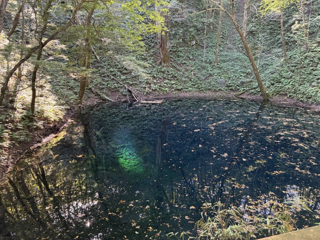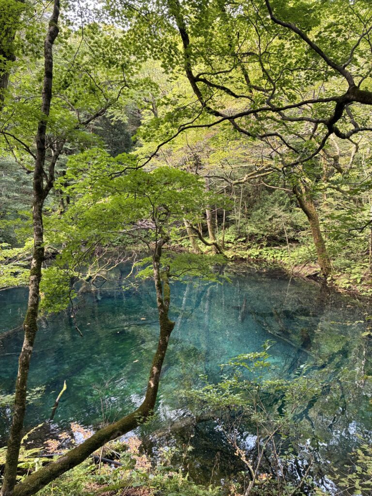 ここが青池、もののけ姫に出てくるシシ神様が水を飲むシーンに出てくる湖